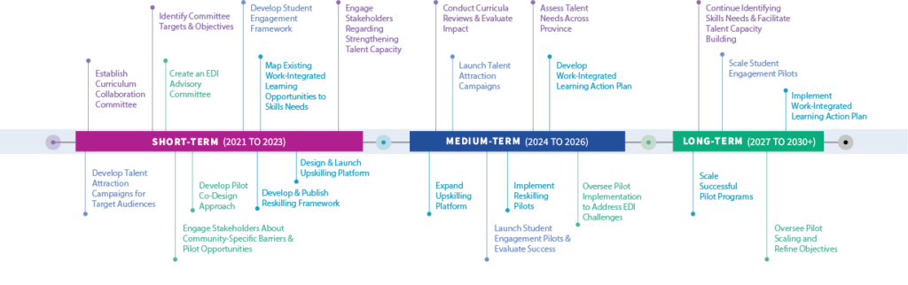 Continue building a strong, agile, and diversified talent pool in Ontario with the right skills for the sector now, and into the future through talent identification and engagement.